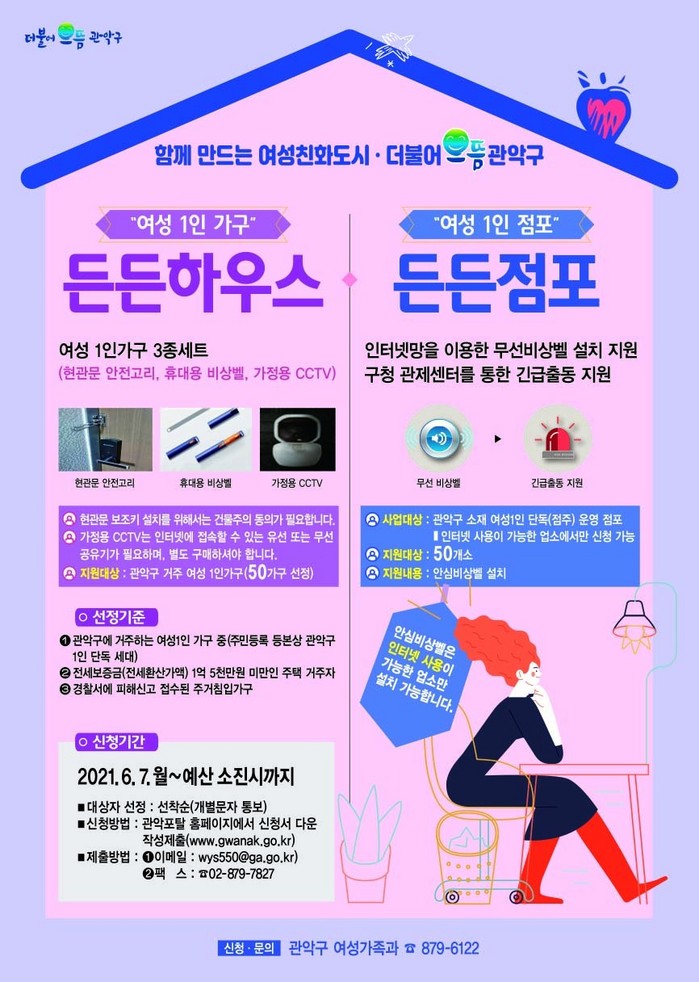 신청을 원하는 여성 1인 가구 및 여성 1인 점주는 관악구청 홈페이지를 참고해서 신청서를 제출하면 된다.