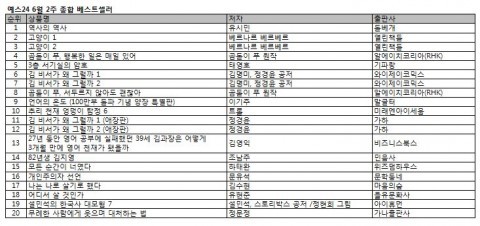 ▲예스24 6월 2주 종합베스트셀러 순위.(예스24 제공) |