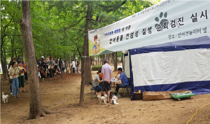 ▲서울시보건환경연구원의 ‘찾아가는 반려견 이동 검진 센터’ 운영 모습.(서울시 제공) |