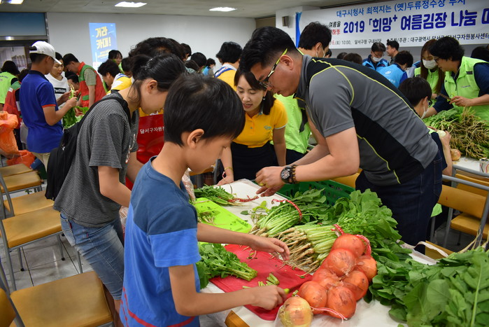 [로컬세계 박세환 기자]대구 달서구와 달서구자원봉사센터는 오는 4일 오전 10시부터 달서구청 구내식당에서 자원봉사자 등 80여 명이 참여해 여름김장(열무 물김치)을 만들어 어려운 이웃에 전달하는 ‘희망⁺ 여름김장 나눔 마당’을 개최한다.