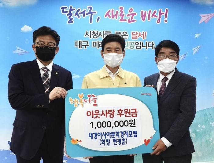 대경아시아문화경제포럼은 달서구를 비롯한 대구지역 5개 구청에 각 100만원씩 성금을 기탁했다.