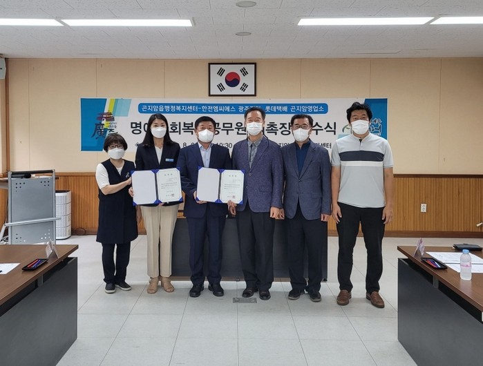 [로컬세계 김병민 기자]경기 광주시 곤지암읍 행정복지센터는 26일 소회의실에서 한전엠씨에스 및 롯데택배 근무자 46명에 대한 신규 명예사회복지공무원에 대한 위촉장을 전수했다고 밝혔다.