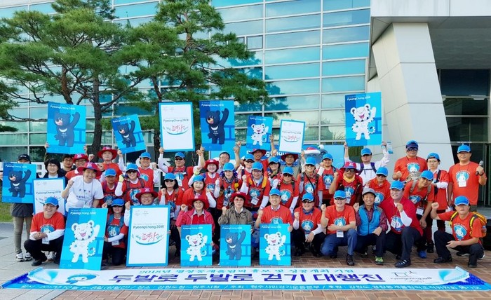 두 단체 50여 명은 지난 7일 오전 9시 강원도청 앞 광장에서 하나 된 열정 평창 동계올림픽 홍보 및 성공적 개최 기원을 위한" 두발로 두발로 걷기 대행진" 행사를 갖고 붐업 조성에 함께 나섰다.