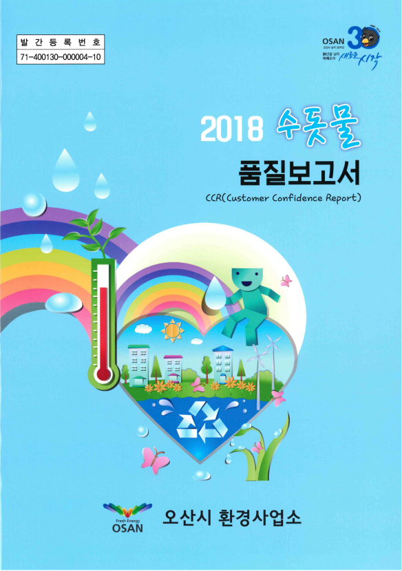 이 보고서에는 수돗물 품질보고서는 수돗물의 원수에서부터 생산 및 공급과정, 2018년 수질검사 결과 및 수질기준에 관한 정보를 주로 소개하고 있다. 아울러 수돗물과 관련된 상식, 수질초과 시 대처방안, 물 절약방법 등 생활에 유익한 정보 등도 담겨있다.