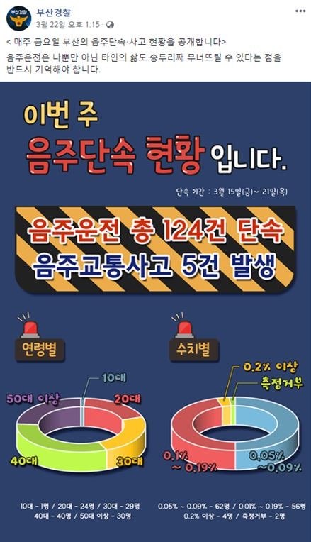 | ▲부산경찰청은 한 주간의 음주운전 단속현황을 SNS에 게시하고 있다.(부산경찰청 제공) |