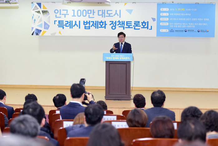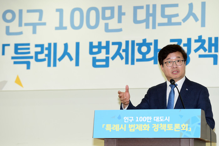 염 시장은 26일 국회의원회관 제2소회의실에서 열린 ‘인구 100만 대도시 특례시 법제화 정책토론회’ 환영사에서 “대한민국의 미래는 지방에 있고, 지방이 잘 살아야 나라 경쟁력과 지속 가능성도 확보할 수 있다”며 “특례시 법제화가 지역의 지속가능성 회복에 큰 역할을 할 것”이라고 기대했다.