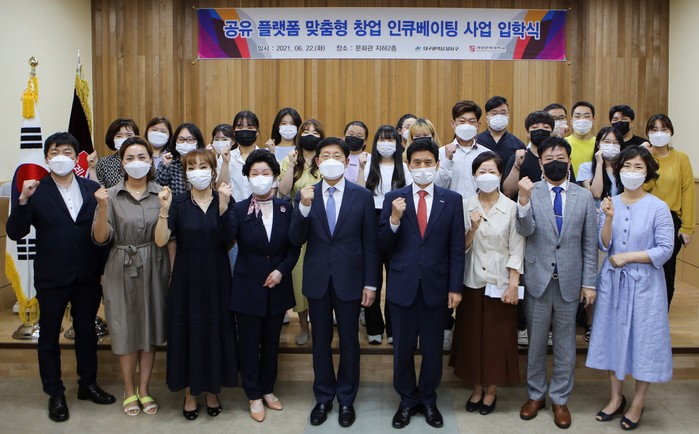 [로컬세계 박세환 기자]대구 달서구는 지난 22일 계명문화대학교 복지관에서 창업문턱을 낮추고 예비창업자 발굴 기반 조성을 위해‘공유 플랫폼 맞춤형 창업 인큐베이팅’개강식을 개최했다고 23일 밝혔다.
