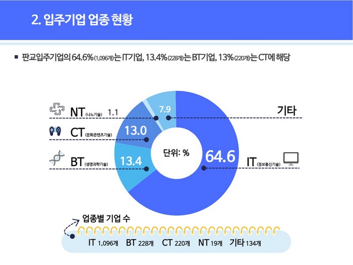 제2판교는 전체 397개 기업 가운데 375개 기업이 중소기업으로 이들이 전체 기업의 94.5%를 차지했다.