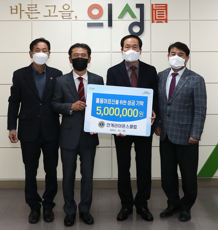 김주수 군수는 “소외된 이웃을 위해 귀한 마음을 전달해 준 안계라이온스클럽에 감사드린다”며 “기탁금은 코로나 장기화와 한파로 심신이 약해진 홀몸어르신들께 전달해 지역사회의 온정을 나누겠다”고 말했다.