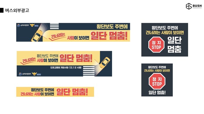 교통사고가 빈번하게 발생하는 교차로 횡단보도와 어린이 보호구역 횡단보도에는 운전자들의 눈에 잘 띄는 반사지와 플래카드를 설치하고, 버스 외부에도 홍보문구를 부착할 예정이다.