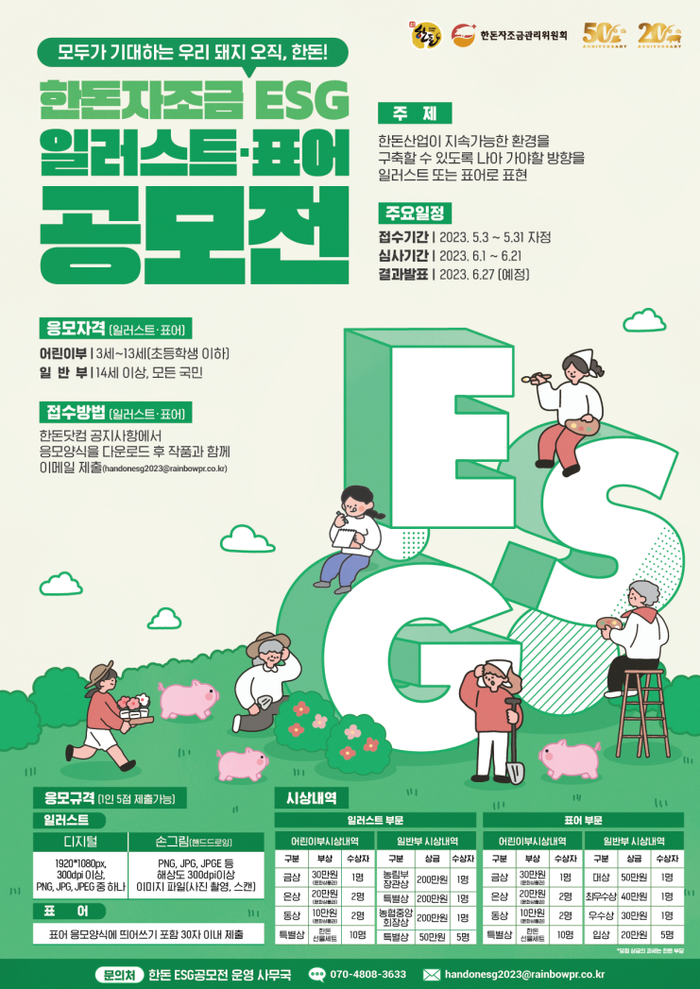 한돈자조금 손세희 위원장은 “지난해 국민들의 많은 관심과 참여로 ESG 공모전을 성공적으로 마친데 이어 올해도 한돈산업의 미래를 함께 고민하고, 탐색하는 기회를 지속 마련하고자 이번 공모전을 준비했다”며 “공모전을 통해 자라나는 미래세대부터 청·장년층까지, 전국민 소통과 참여를 통해 국민들이 체감할 수 있는 지속가능한 한돈산업을 실현하도록 발판을 마련하겠다”고 전했다.