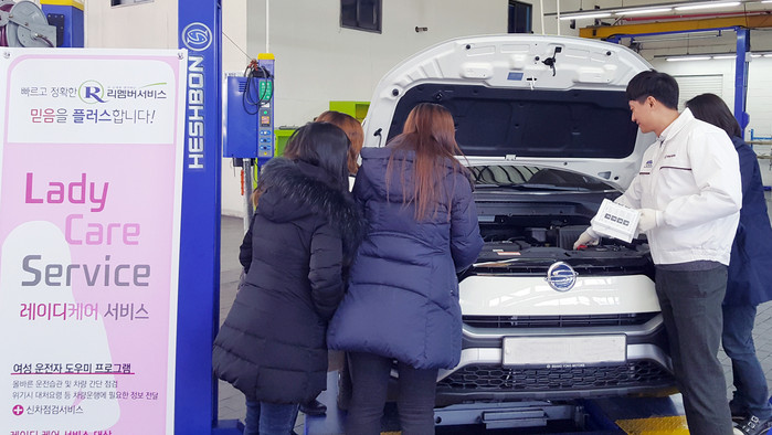 ‘레이디케어(Lady Care) 서비스’는 쌍용차 여성고객이라면 누구나 참여할 수 있는 여성운전자 도우미 프로그램이다. 온라인을 통해 쉽게 신청할 수 있으며 전국 50개소(직영/법인정비사업소, 정비센터)에서 매월 실시한다.