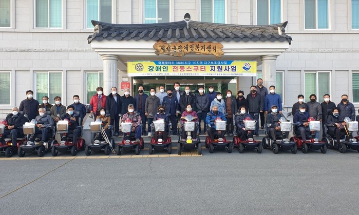 [로컬세계 박상진 기자]경북 의성군은 지난 2일 국제로타리3630지구 의성로타리클럽과 산수유로타리클럽에서 경북지체장애인협회 의성군지회에 전동스쿠터 19대를 지원해 보행이 어려운 장애인 19명에게 전달했다고 8일 밝혔다.