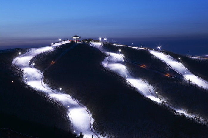 ▲하이원 스키장 슬로프 야경.(하이원 제공) |