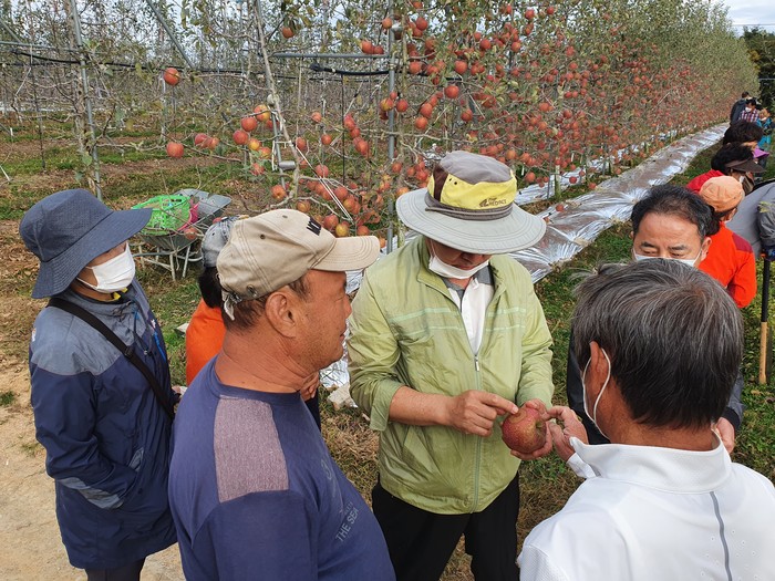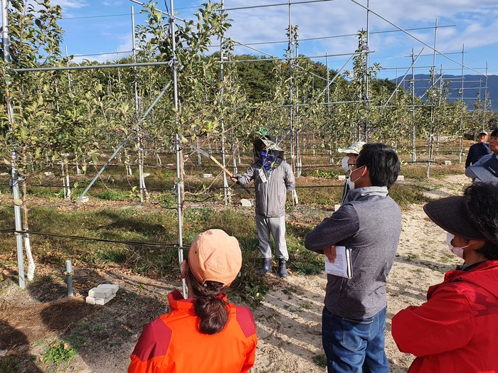 이번 사과반 실습교육은 산동면농민상담소장과 같이 재식 1년차 신규농가부터 7년 경력의 베테랑 농가까지 현장에서 컨설팅 형식으로 진행됐다.