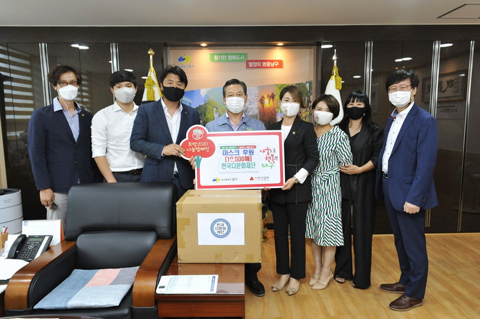 대구 남구청(구청장 조재구)은 지난 15일, 한국다문화재단(대표 권재행)에서 관내 저소득 어린이들을 위해 어린이용 덴탈마스크 1만매를 기탁했다고 밝혔다.