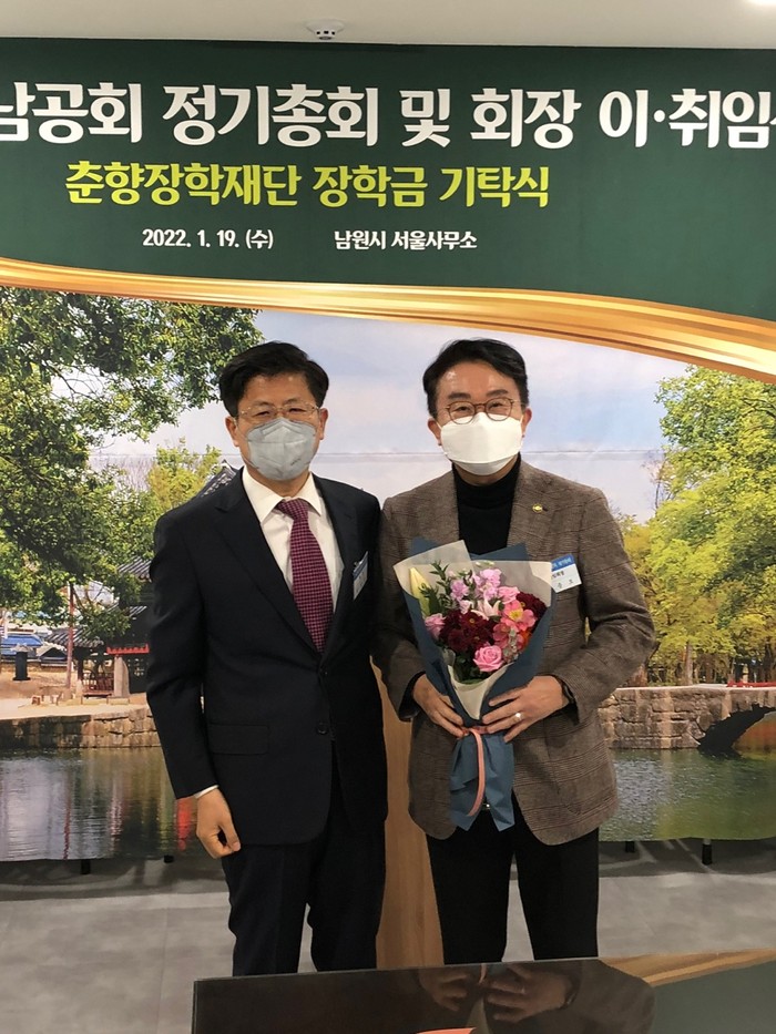 이환주 남원시장은 “고향 후배들을 위한 관심과 사랑에 진심으로 감사드린다. 후일 남원을 이끌고나갈 인재양성을 위하여 기탁한 장학기금은 소중하게 활용할 것을 약속하겠다. 또한 신임 양충모 남공회장에 축하를 드리며, 올해에도 남원 발전을 위해 많은 조력을 해 달라.”며 축하 메시지를 보내 왔다.