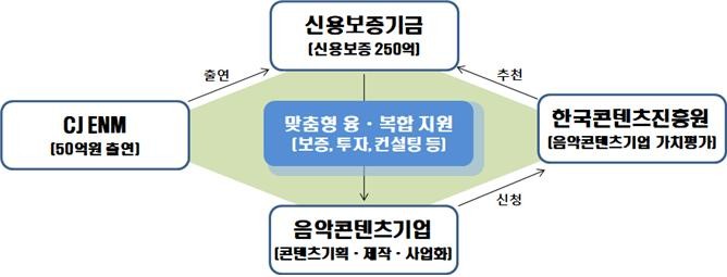 ◆ 콘진원 콘텐츠가치평가, CJ ENM 출연, 신보 보증으로 음악산업에 250억원 규모의 보증 지원
