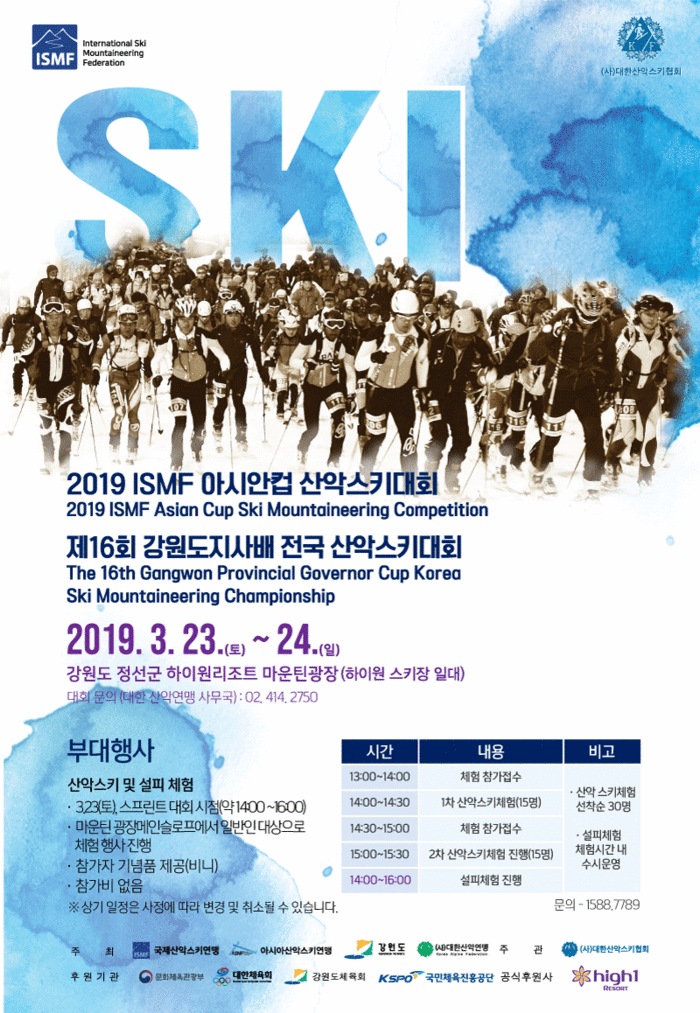 하이원리조트가 후원하고 대한산악스키협회가 주관하는 이번 대회는 스프린트와 인디비주얼 두 종목으로 진행되며 한국, 중국, 일본, 러시아, 이란 등 국내·외 아시아권 산악스키 선수 100여 명 및 동호인 등이 대거 참가할 예정이다.