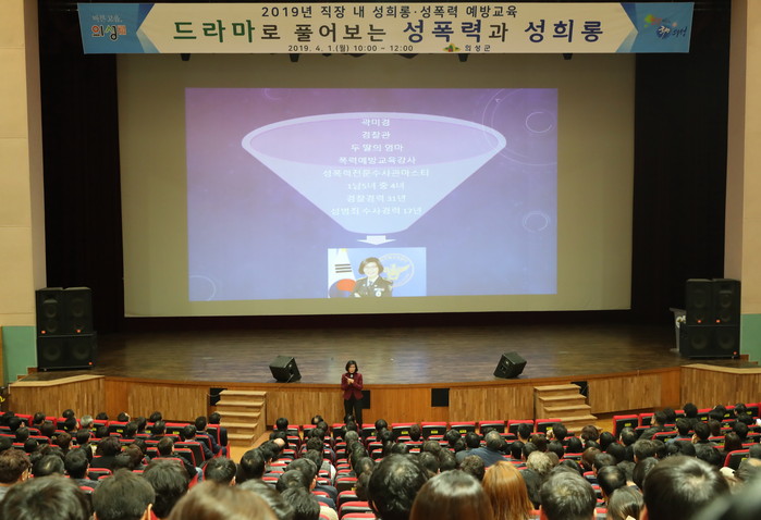 | ▲지난 1일 의성문화회관에서 진행된 직장 내 성희롱⋅성폭력 예방교육.(의성군 제공) |
