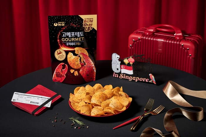 고메포테토 블랙페퍼크랩맛은 농심과 싱가포르관광청, 여행 유튜버(노마드션)가 협업해 개발한 것이 특징이다. 농심은 새로운 맛 타입 개발을 위해 ‘고메로드 미션’을 부여하고, 유튜버는 미식의 도시인 싱가포르 곳곳에서 다양한 음식을 맛본 뒤 농심 고메포테토와 가장 어울리는 최적의 메뉴를 추천했다.
