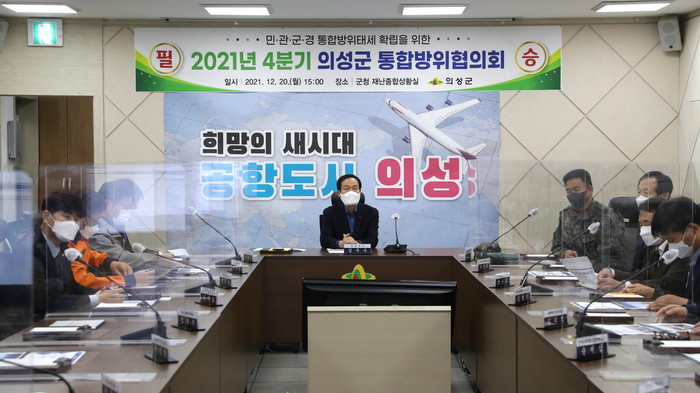 [로컬세계 박상진 기자]경북 의성군은 지난 20일 군청 재난상황실에서 민·관·군·경 지역 통합방위 태세를 점검하고 안보 역량을 강화하기 위해 2021년 4분기 통합방위협의회를 개최했다고 22일 밝혔다.