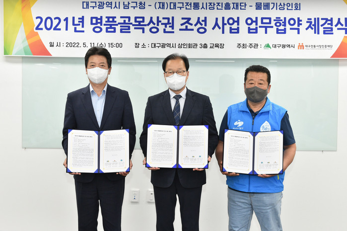 [로컬세계 박세환 기자]대구 남구청은 지난 11일 (재)대구전통시장진흥재단 및 물베기상인회와 2021년 명품골목상권 조성 사업 협력을 위한 협약을 체결했다고 16일 밝혔다.