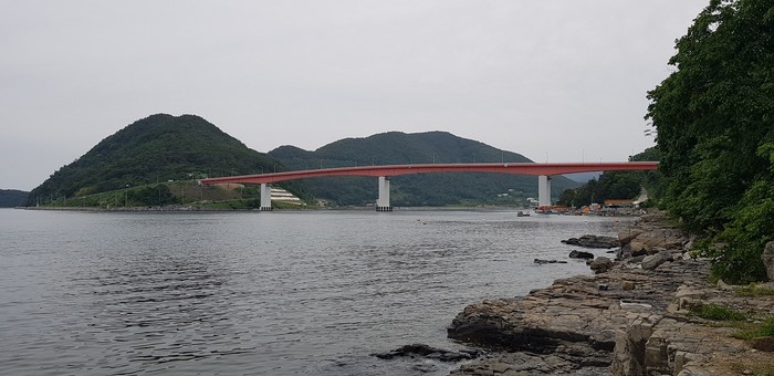 | ▲멀리서 바라본 동진교의 모습. 진전면과 고성군 동해면을 잇는 다리다. |