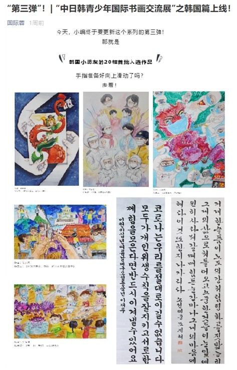 | ▲제10회 한중일 국제청소년미술교류전에 참가한 작품 중 청두시 위챗 공중계정에 선정되어 전시된 수성구 청소년 미술작품. |
