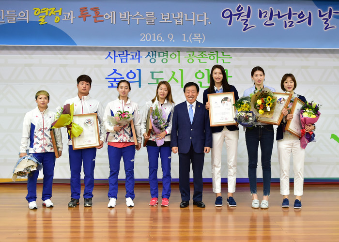 안산시는 2016 리우데자네이루 하계올림픽에 국가대표로 출전하여 안산시의 명예를 드높이고, 안산시민에게 자긍심을 심어 준 선수들에게 시민행복상을 수여하였고, 선수들은 안산시의 관심과 지원에 고마움을 전하며 각 종목에 대한 지속적인 관심과 사랑을 부탁했다.