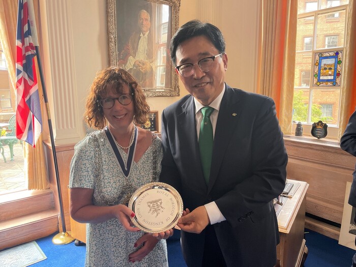 이어, 영국 런던 킹스턴구 의회(Royal Borough of Kingston upon Thames)를 찾아 다이애나 화이트(Diane White) 킹스턴구 시장, 안드레아스 커쉬(Andreas Kirsch) 킹스턴구의회 의장, 한국계 김동성(Robert Kim) 킹스턴구 의원 및 장정은 한영문화교류재단(Korean British Cultural Exchange) 이사와 간담회를 가졌다.