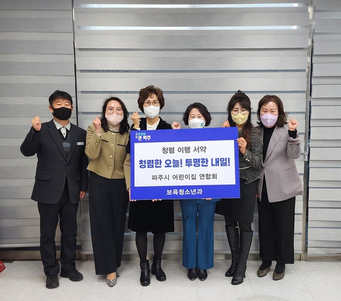 [로컬세계 = 이영원 기자]경기 파주시(시장 김경일)는 19일 어린이집 연합회와 청렴이행 서약식을 가졌다.