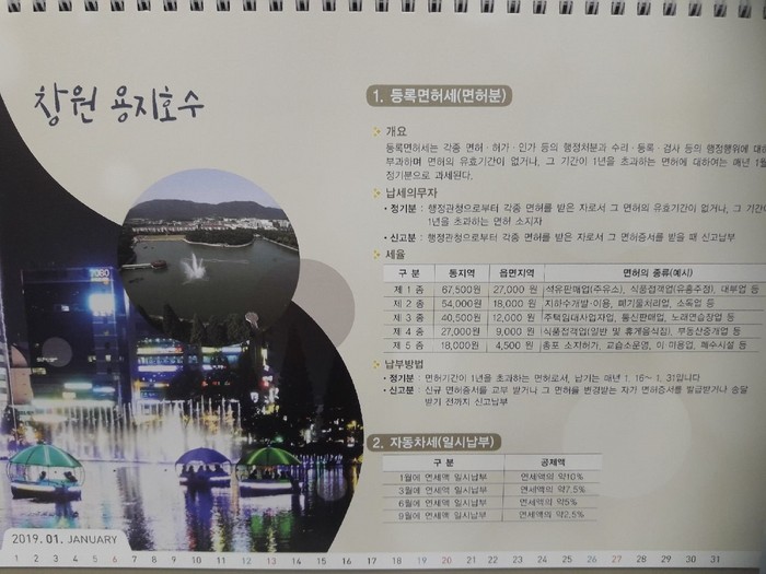 박진열 창원시 세정과장은 “세정달력은 납세자가 지방세에 대하여 궁금한 내용을 담았고 배경 사진에는 창원지역의 주요 관광명소를 넣어 시정 홍보에도 효과적”이라고 말했다.