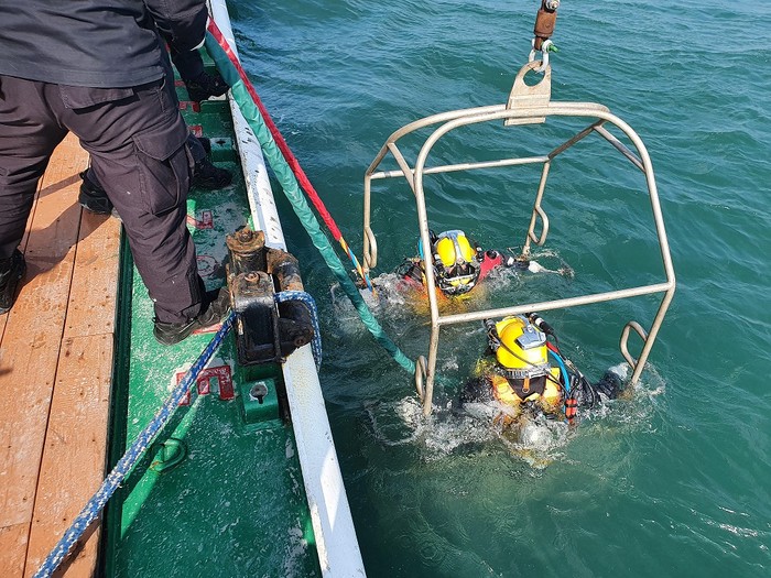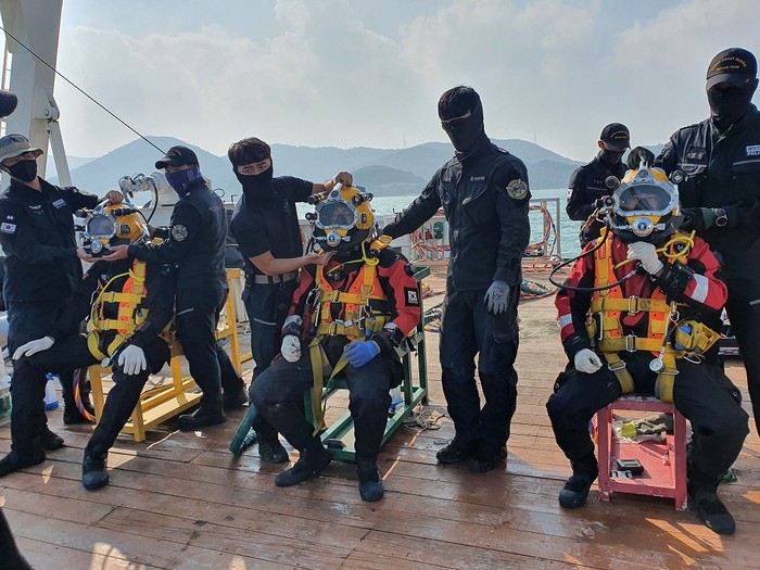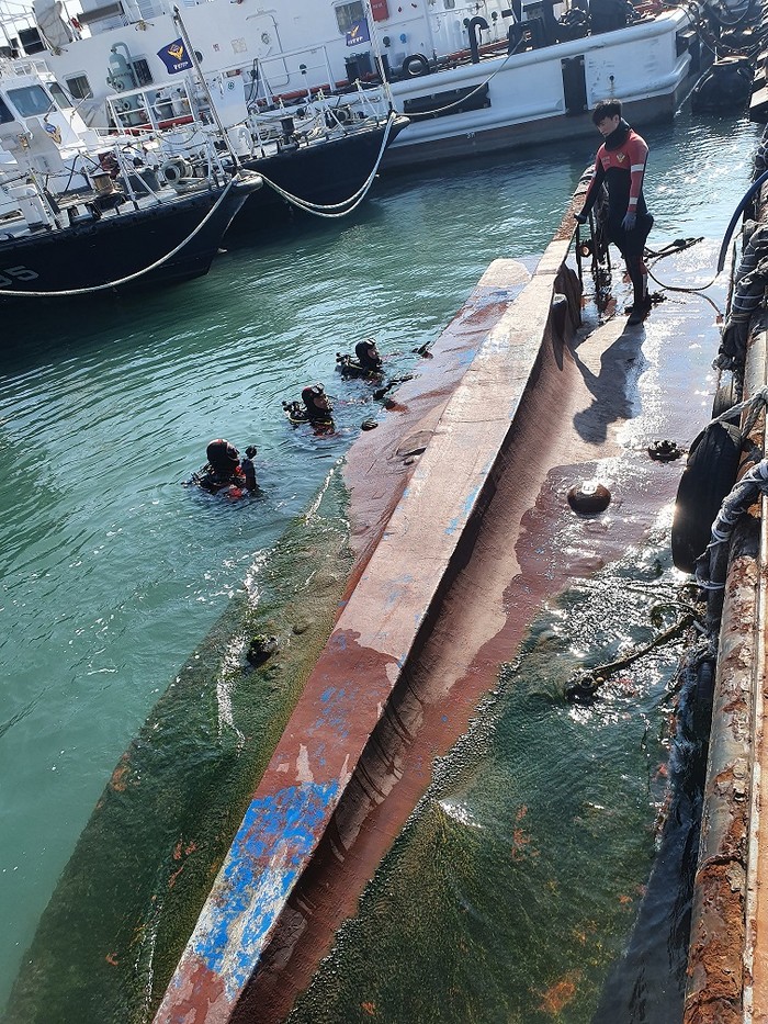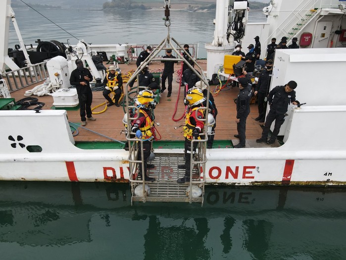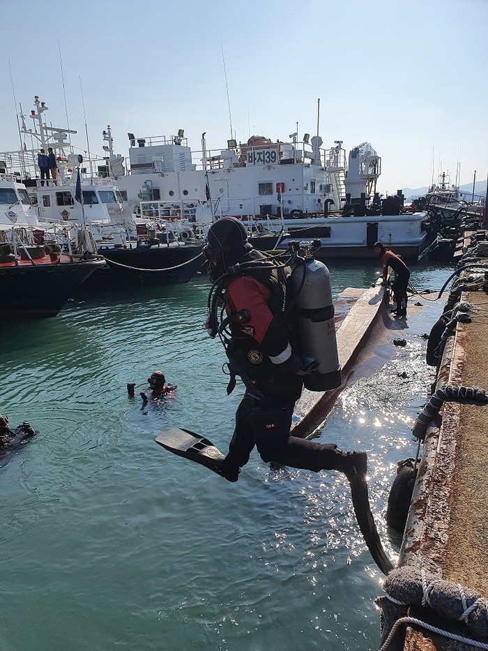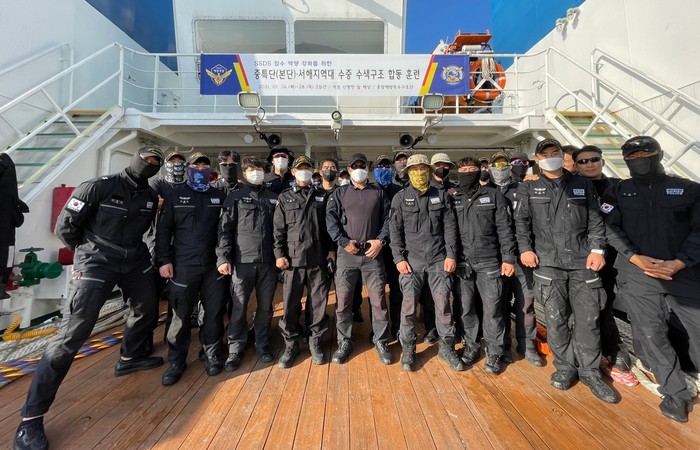 중앙해양특수구조단(단장 김환경)은 지난 26일부터 28일까지 3일간 목포 신항만 인근 해상에서 전복선박 사고 대응 및 표면공급식 잠수장비(SSDS)를 활용한 실전형 수중수색 구조훈련을 실시했다.(사진=중앙해양특수구조단 제공)