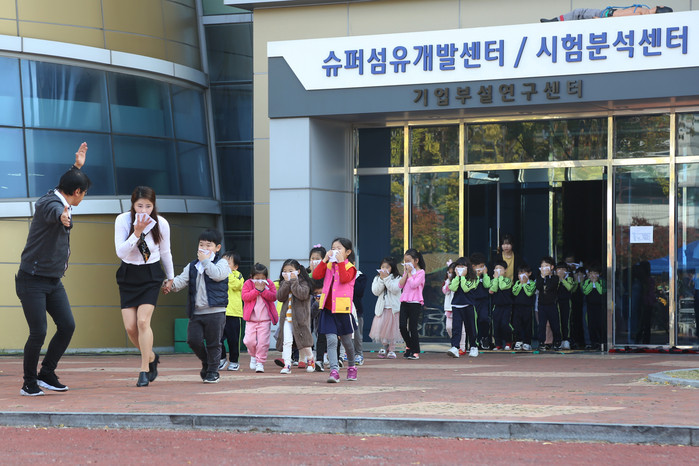 이번 훈련은 중리동 일대에 지진이 일어나 한국섬유개발연구원 실험실에서 화재가 발생해 건물 전체로 번지는 재난상황을 설정해 실시됐다.