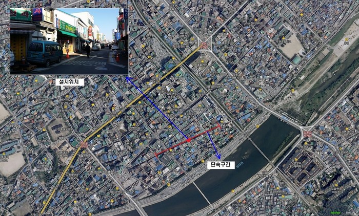 해당 구간은 중앙시장2길 내 400m 구간으로 일방통행 도로 양쪽으로 상가들이 밀집해 있고 인도 위 불법주정차로 인해 차량통행이 혼잡한 지역이다.
