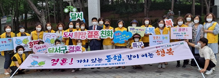 홍보 캠페인은 달서구가 ‘결혼장려의 달’로 지정한 7월의 첫 행사로써, 결혼친화 서포터즈단과 함께 비혼 만혼의 부정적 결혼관을 긍정적으로 개선해 결혼 장려 문화를 확산하고자 마련했다.