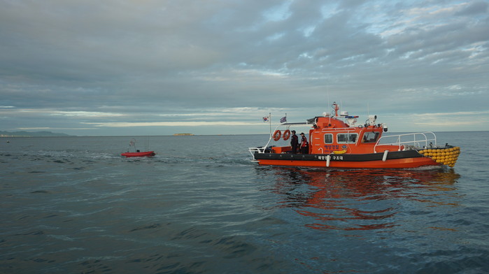 ▲표류하던 레저보트를 구조하고 있다.(부산해양경찰서 제공) |