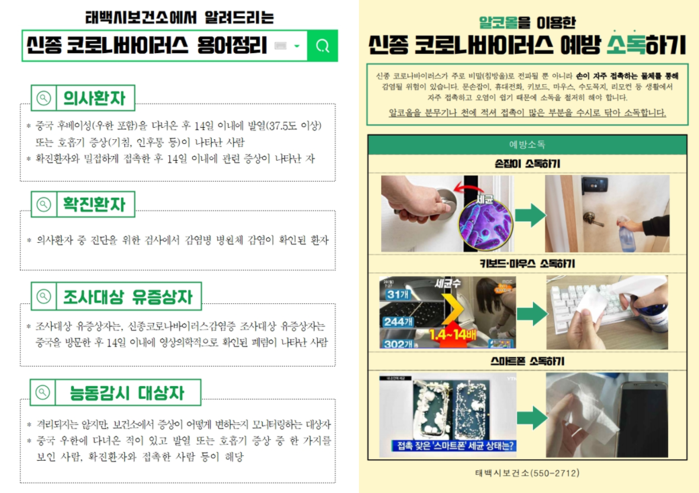 [로컬세계 박상진 기자]강원 태백시보건소(소장 김미영)는 신종 코로나바이러스 국내 확진환자 증가 추세에 따라 방역을 확대 실시하고 있다고 7일 밝혔다.