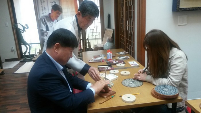 이날 성내면 직원들은 김종대 선생과 김희수 전수조교를 직접 만나 무료로 윤도 제작 시연과 체험을 진행했다.