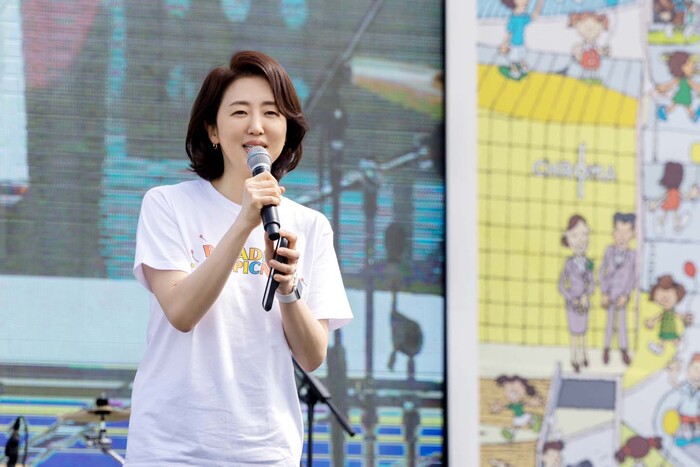 ▲지난 4일 인천 영종도 파라다이스시티에서 열린 ‘제14회 아이소리축제’ 오프닝 행사에서 최윤정 파라다이스복지재단 이사장이 무대에 올라 환영 인사를 하고 있다. |