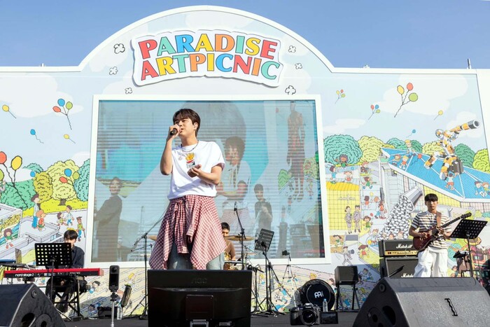 ▲지난 4일 인천 영종도 파라다이스시티에서 열린 ‘제14회 아이소리축제’에서 가수 이무진이 축하 공연을 펼치고 있다. 파라다이스 제공 |