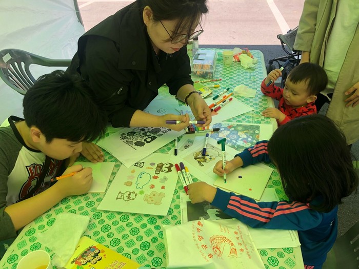 | ▲‘저출산 극복 릴레이 캠페인’의 체험행사에서 아이들이 그림을 그리고 있다. |