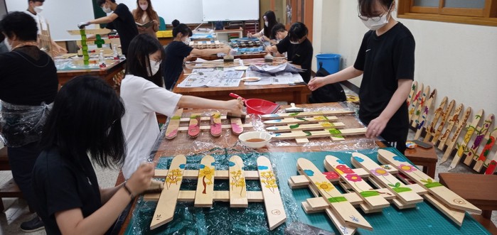 ‘도원동 우리마을 교육나눔위원회’에서 지난 5월부터 월 2회씩 학생들과 함께 폐목재 그림 그리기를 시작해 85여개의 울타리를 직접 만들어 도원 생태하천 탐방로에 최근 설치했다.