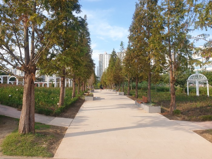‘도시숲 리모델링 사업’은 오산시를 대표하는 고인돌역사공원 장미뜨레 주요 산책로에 노후된 호박덩굴 트렐리스와 미작동 경관조명을 철거하고, 산책로 양쪽에 식재된 메타세콰이어를 특화해 ‘MINI 명품 가로수길’을 조성하는 사업이다.
