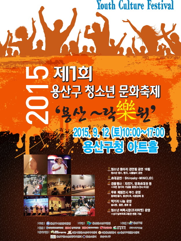 청소년문화축제는 성장현 용산구청장의 개회사를 비롯해 우수모범 청소년 시상식과 예선을 거쳐 선발된 16개팀이 보컬부문과 댄스부문으로 나눠 공연한다.