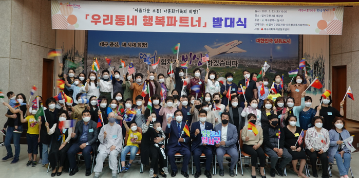 [로컬세계 박세환 기자]대구 달서구는 지난 22일 구청 2층 대강당에서 ‘아름다운 소통, 다문화가족의 희망’이라는 슬로건 아래 다문화가족과 동네 복지리더 60명이 참여해 ‘우리동네 행복파트너’ 발대식을 개최했다고 24일 밝혔다.