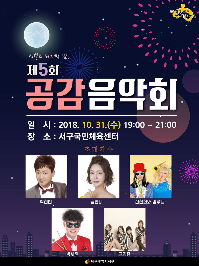 [로컬세계 박세환 기자]대구 서구는 이달 31일 오후 7시부터 서구국민체육센터에서 ‘제5회 공감음악회’를 개최한다고 18일 밝혔다.