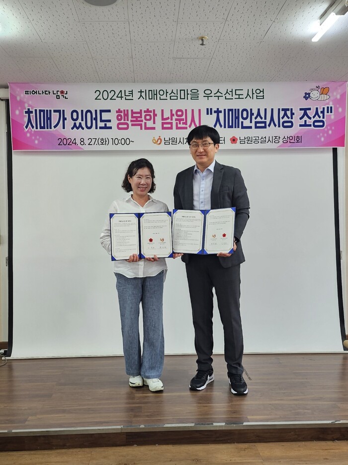 [로컬세계=이태술 기자]전북 남원시 치매안심센터와 '남원공설시장 상인회'는 치매에 대한 인식개선과 치매 친화적 환경 조성을 위해 ‘치매안심시장 협약’을 27일 체결했다.