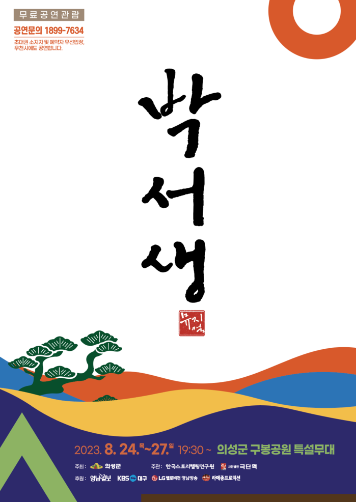 김주수 의성군수는 “지난해에 이어 올해도 의성 출신 율정 박서생의 혁신적인 청년정신이 널리 알려지는 계기가 되길 바란다”라며 “더 나아가 우리 지역을 넘어 우리나라를 대표하는 공연콘텐츠로 거듭날 수 있도록 많은 관심과 격려를 부탁드린다”고 말했다.